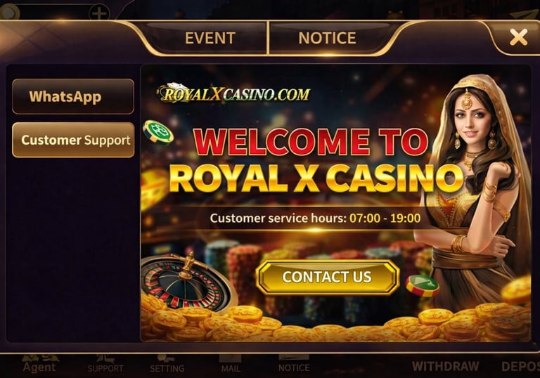 The royal casino game includes multiple entertaining options such as Teen Patti, card tables, and other online casino games. Players can join different rooms, compete with others, and enjoy real-time gameplay.